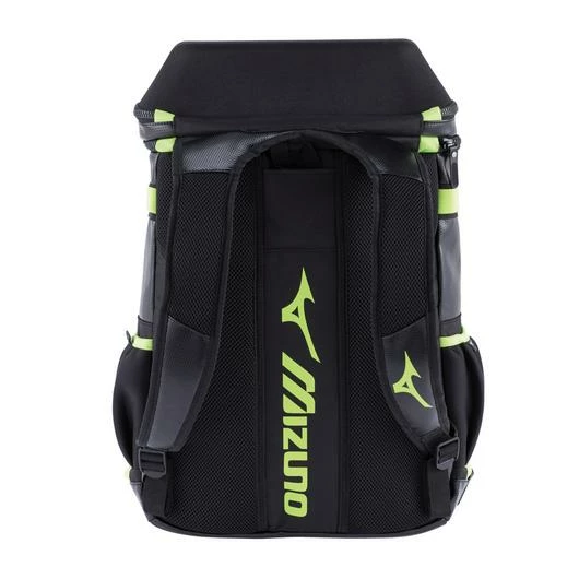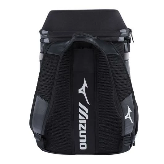 A flagship baseball backpack bag, full of premium features to make it the ultimate option for life on the diamond. The top features a special Molded Glove Compartment to provide protection and safe storage of your glove. A built-in insulated cooler pouch keeps your drink, food, or towel cool all game. The spacious interior contains a protective sleeve that can be used to store a laptop up to 17”, while separating it from your gear. Side bat sleeves conveniently stores up to 4 bats and a J Hook Fence Hanger allows for easy hanging. Mizuno Aerostraps and a padded back provide optimum comfort to round out a power-packed list of superior features.