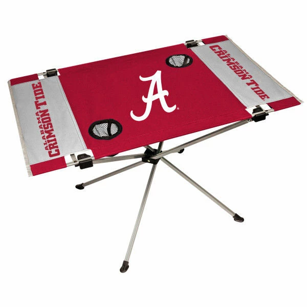 Great for tailgating, concerts and picnics, this End Zone tailgate table features team colors and logos. This table holds up to 75 lbs of food and drinks with 2 cup mesh holders. Made from 600D polyester top and durable steel frame, this tailgate table also includes a team logo carry case. Fully assembled the dimensions are 31.5 in L x 20.7 in W x 19 in H. Folded dimensions are 4 in L x 4 in W x 34 in H.Â