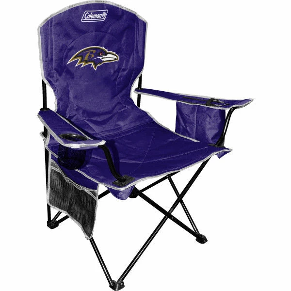 Tailgating gear is an essential part of any sporting event! Whether your meeting your friends at the Stadium to watch a National Football League game or you just want to show your support for your favorite team at a backyard BBQ, Rawlings has now partnered with Coleman to bring you the ultimate Tailgating accessories. This NFL Quad Chair features your favorite team logo on the front and the back. The chair also offers a reinforced steel frame with a 300 lb weight rating for durability. This chair has a mesh cupholder, program holder, a cooler built into the armrest, and extra padding for comfort and convenience. NFL Teams available: Arizona Cardinals, Atlanta Falcons, Baltimore Ravens, Buffalo Bills, Carolina Panthers, Chicago Bears, Cincinnati Bengals, Cleveland Browns, Dallas Cowboys, Denver Broncos, Detroit Lions, Green Bay Packers, Houston Texans, Indianapolis Colts, Jacksonville Jaguars, Kansas City Chiefs, Miami Dolphins, Minnesota Vikings, New England Patriots, New Orleans Saints, New York Giants, New York Jets, Oakland Raiders, Philadelphia Eagles, Pittsburgh Steelers, San Diego Chargers, San Francisco 49ers, Seattle Seahawks, St. Louis Rams, Tampa Bay Buccaneers, Tennessee Titans, Washington Redskins